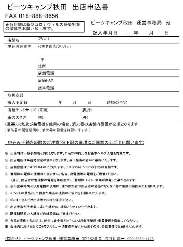 2025年の出店の申込み方法について(2025年の受付は終了しました) FAX番号 018-888-8656